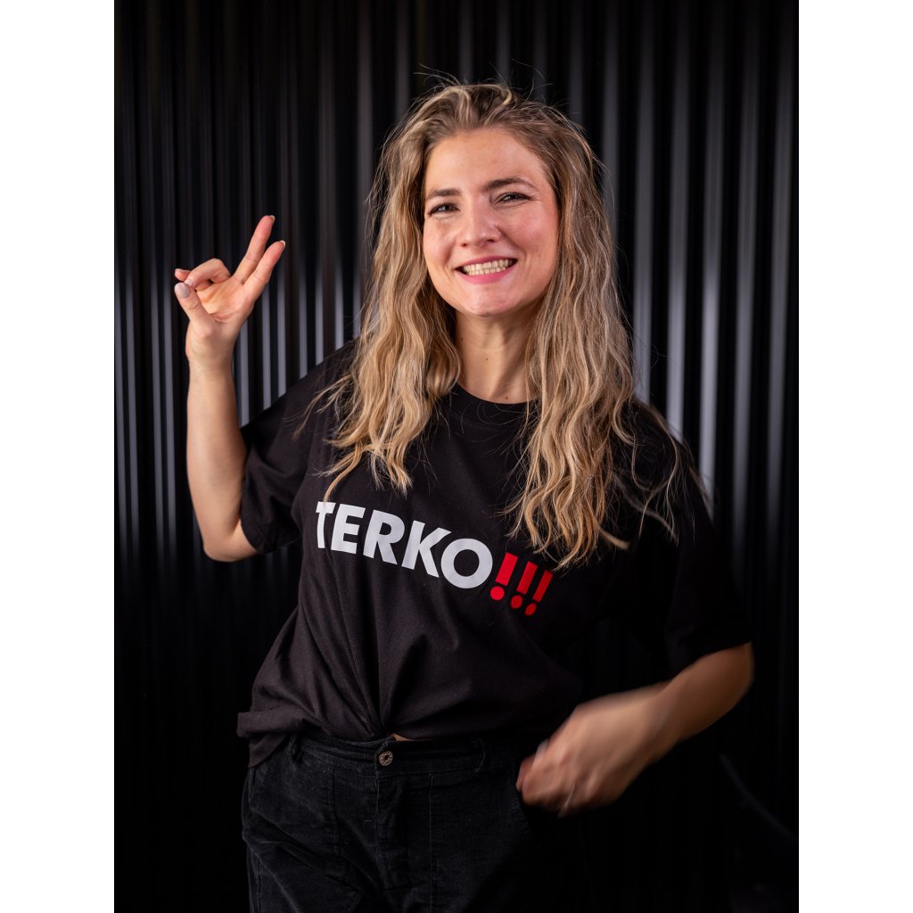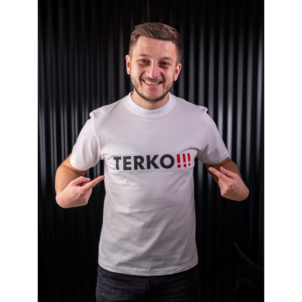 Tričko má nápis TERKO!!! na prsou a HRDOBCI na zádech. Trička jsou unisex.